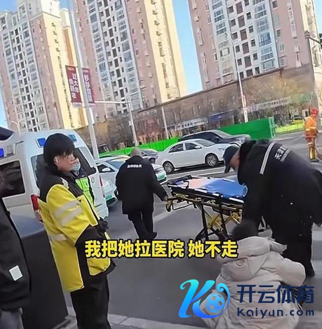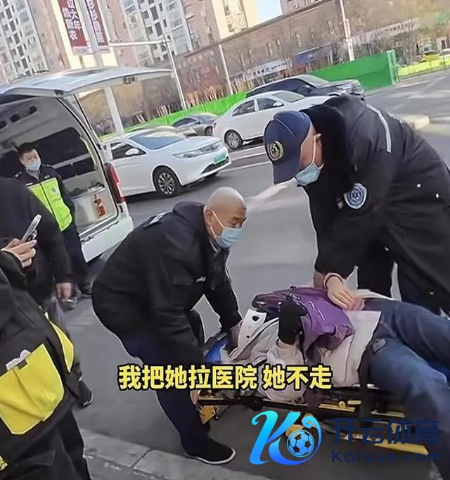 救护车到了,大妈上了担架,却不让走。